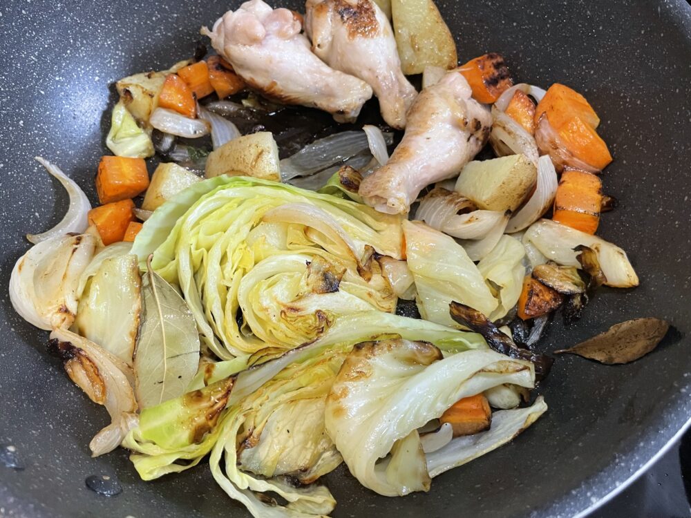 焦げ目がつくほどしっかり焼いて、水を足すバージョンです。